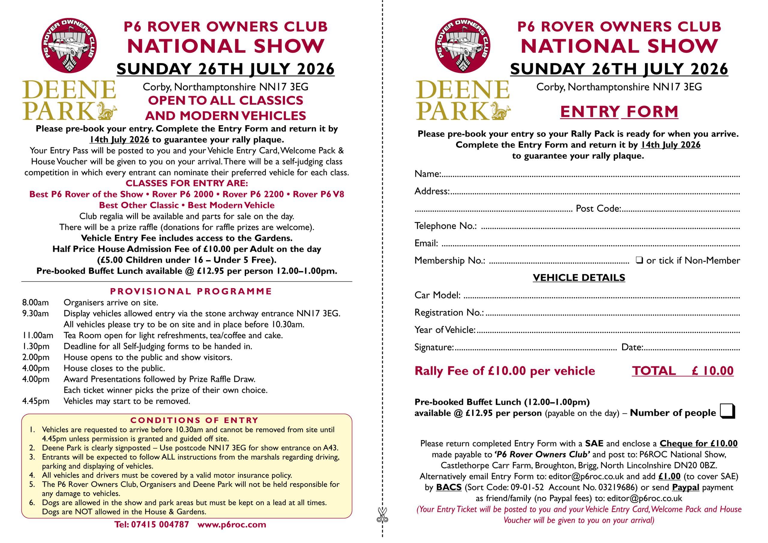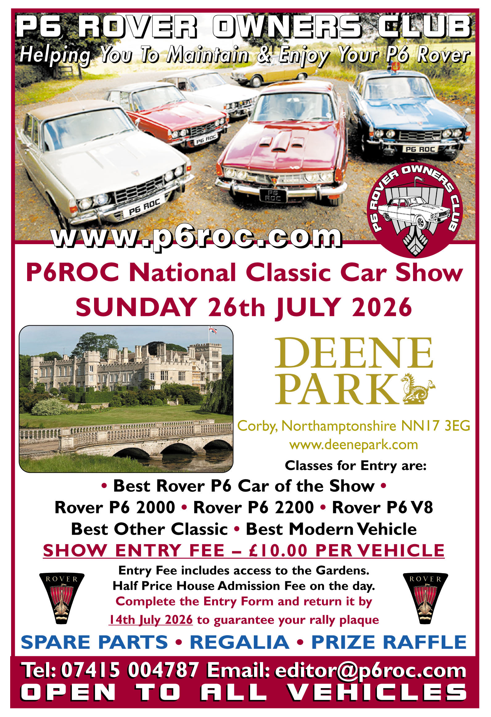 BECOME A P6 ROVER OWNERS CLUB MEMBER FROM NOW UNTIL 31ST DECEMBER 2026 (FULL YEAR) FOR ONLY £32.00 (UK) £43.50 (EUROPE) / £49.50 (OUTSIDE EUROPE) AND RECEIVE THE SUMMER & AUTUMN 2025 P6 NEWS MAGAZINES IN YOUR NEW MEMBERSHIP PACK (whilst in stock) THEN RECEIVE THE WINTER 2025 AND ALL OF 2026 MAGAZINES ONCE PUBLISHED